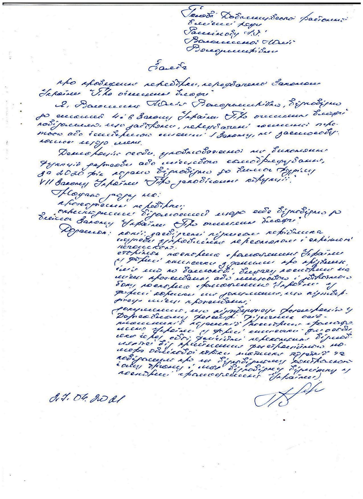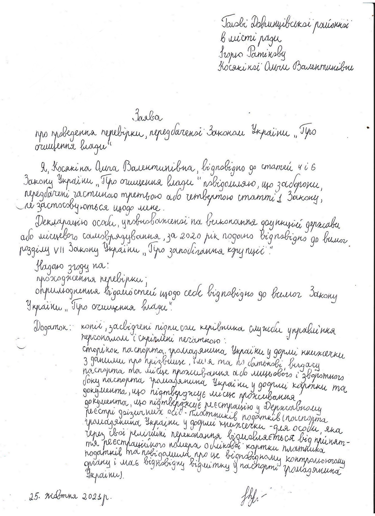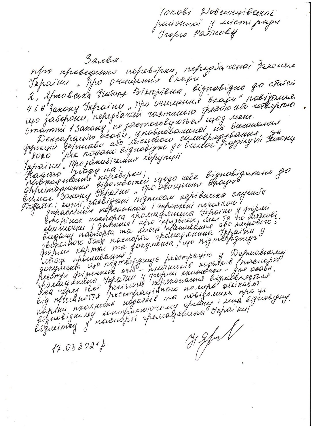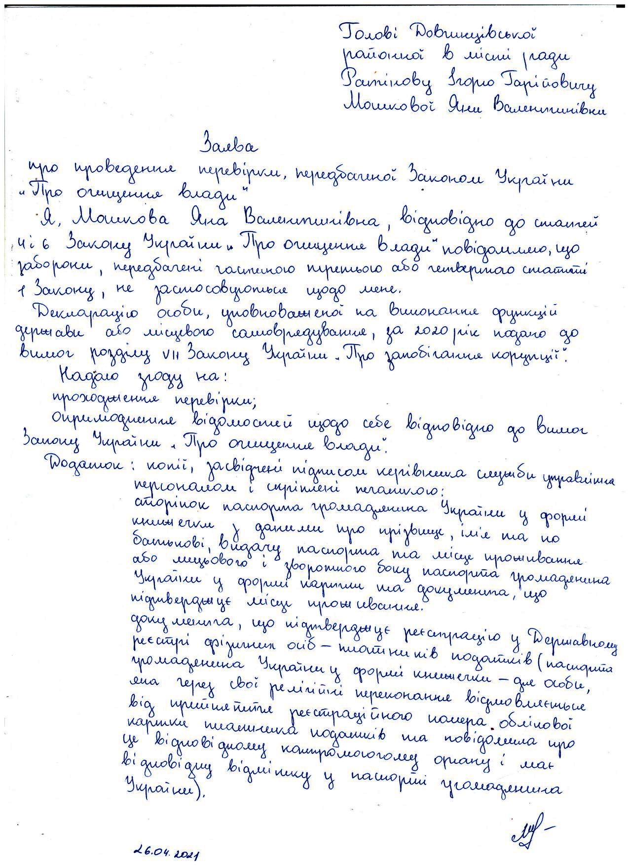 Заява про проведення перевірки, передбаченої Законом України «Про очищення влади».
