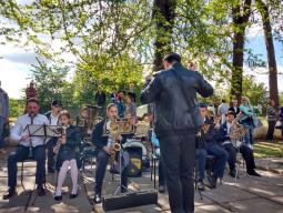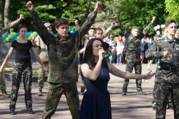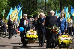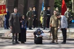 В парку Залізничників лунали пісні воєнних років, виступи духового оркестру КПМНЗ «Криворізька міська музична школа №11». Ветеранів війни пригощали солдатською кашею.