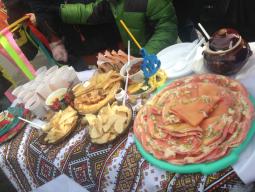 Усі бажаючі мали змогу скуштувати ніжні, рум’яні млинці з різними начинками, вареники, пиріжки та багато інших яств. Усю цю смакоту презентували загальноосвітні навчальні заклади та районна рада ветеранів. Прекрасні виступи самодіяльних колективів районної ради ветеранів та ігрова програма додали особливого піднесеного настрою.