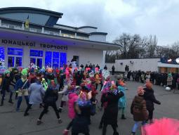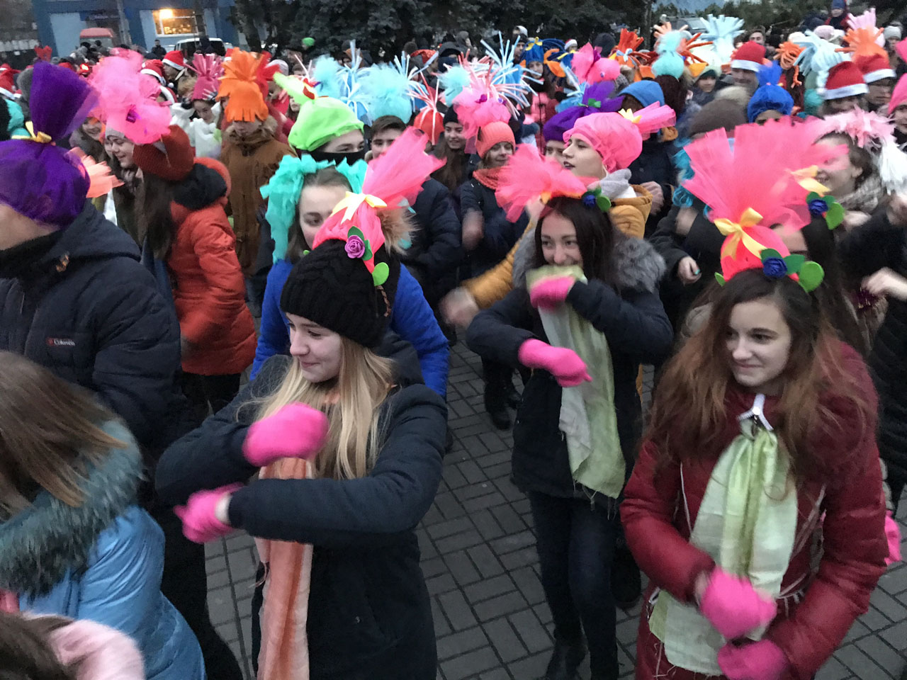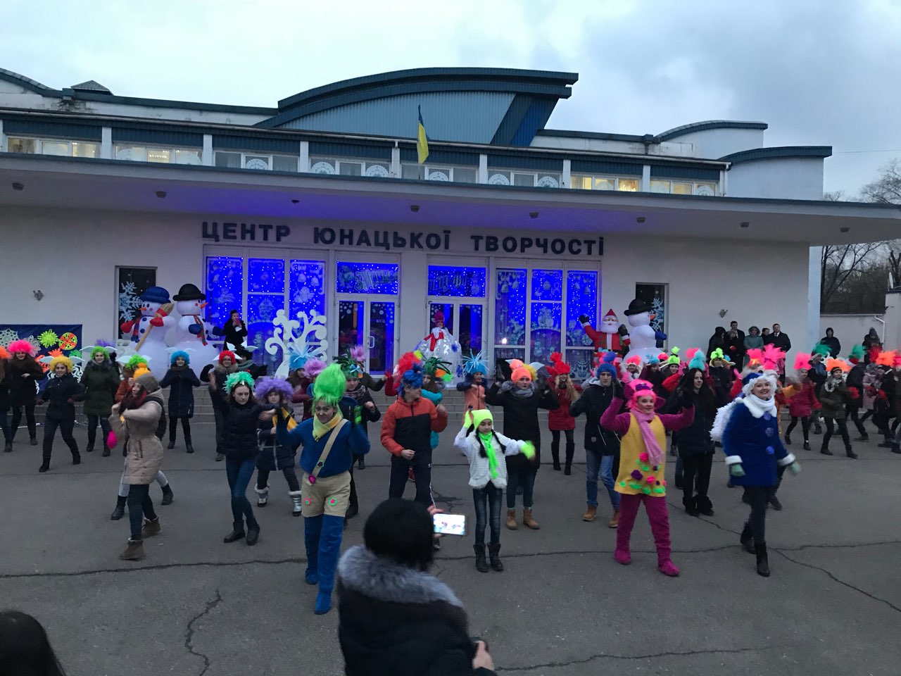 Завдяки яскравому новорічному шоу «Янголи дитинства» присутні отримали масу гарних та позитивних емоцій. Біля ялинки зібрались діти з батьками, громадський актив району, яких розважали веселі тролі, що представити 2 флешмоби у кількості 460 дітей з загальноосвітніх навчальних закладів району, та найкращі колективи ЦДЮТ «Гармонія».
