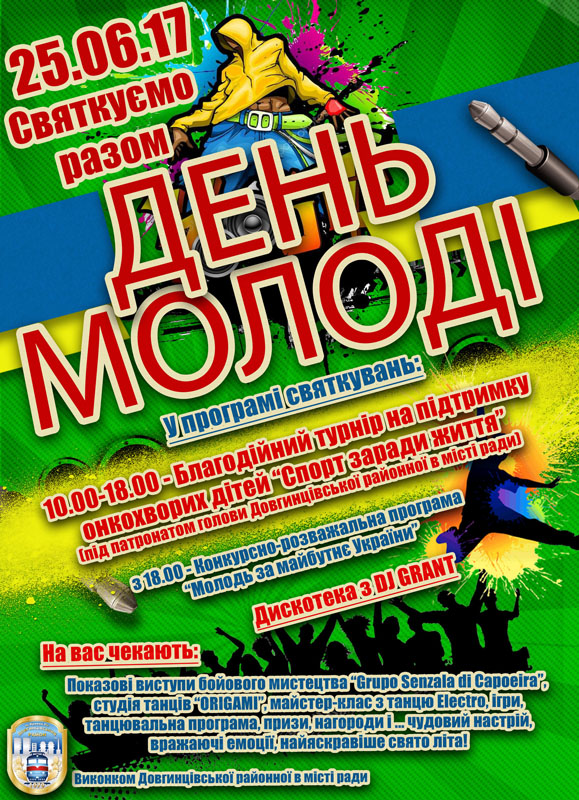 25 червня 2017 року запрошуємо усіх криворіжців на святкування Дня молоді у Довгинцівському районі